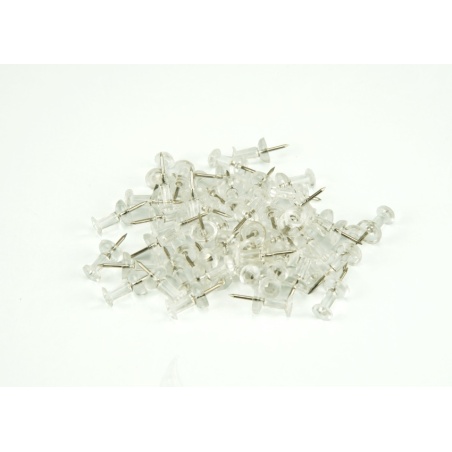 Opakowanie zawiera 50 szt przeźroczystych pinezek beczułek.