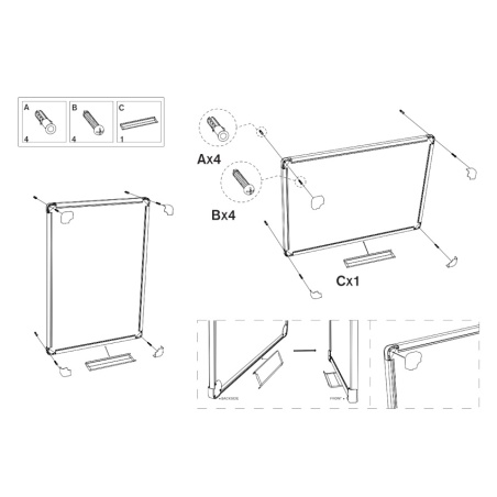 Tablicę montuje się przy pomocy kołków rozporowych w czterech rogach profilu aluminiowego.