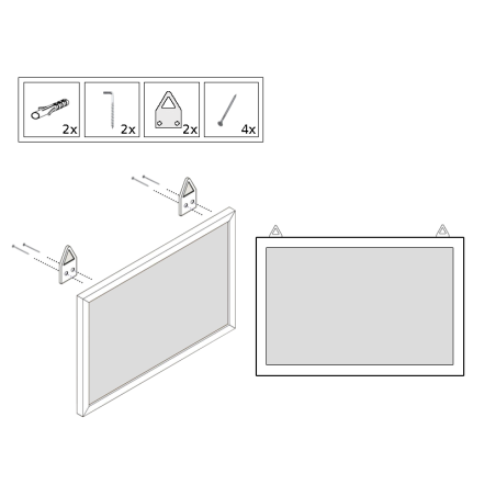 Tablicę montuje się do ściany przy pomocy zawieszek tzw "uszek" które przybijamy z tyłu do ramki MDF w odległości około 2 cm od narożnika.